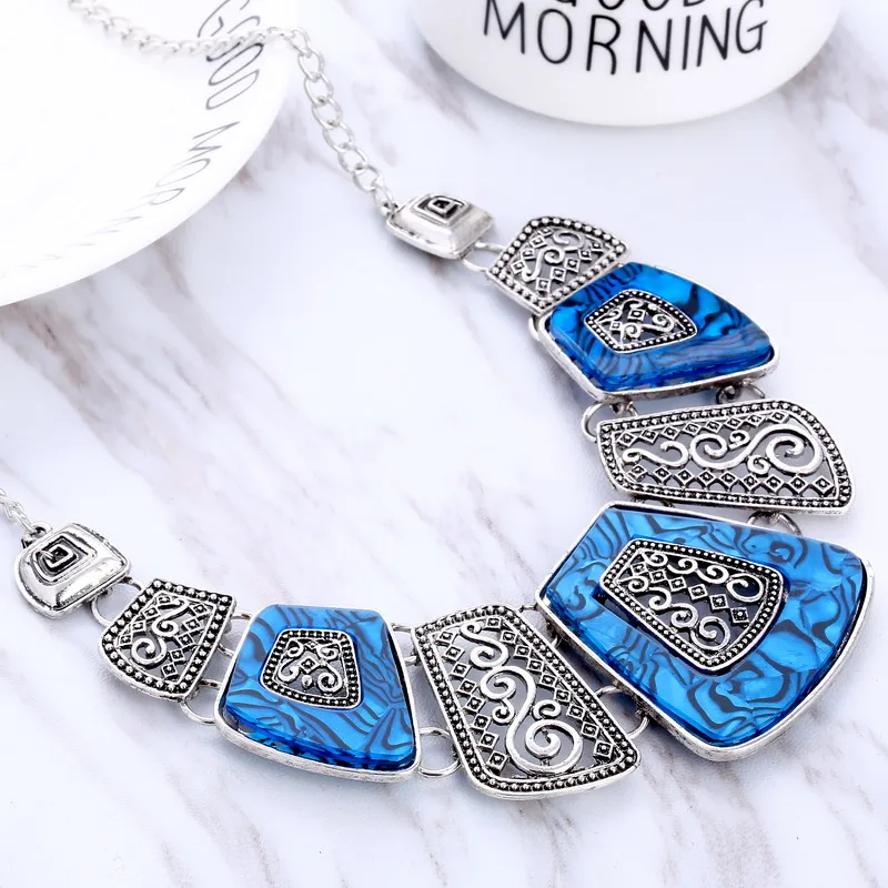 Best Hesiod New Bohemian Choker Necklace Fashion Ethnic Collares Vintage Silver Bead Pendant Statement N