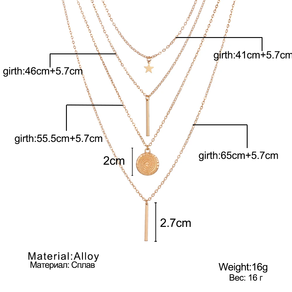 Buy IPARAM 2019 Vintage Bohemian Multilayer Round Star Necklace Ladies Layered Gold Long Rod Pendant Fa