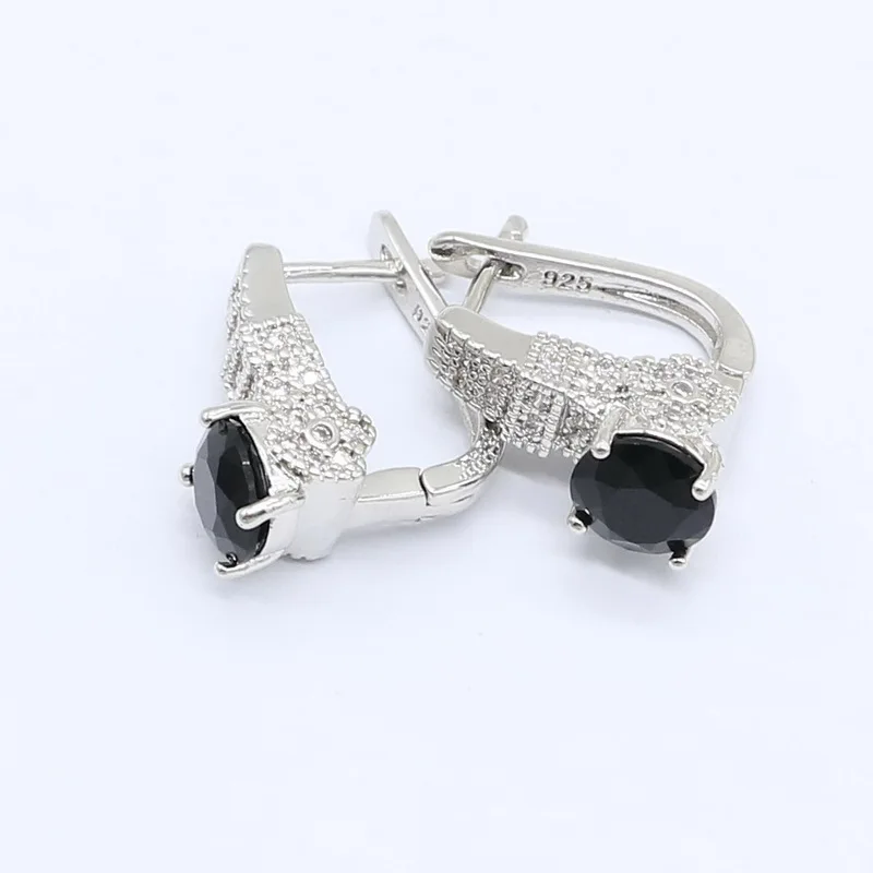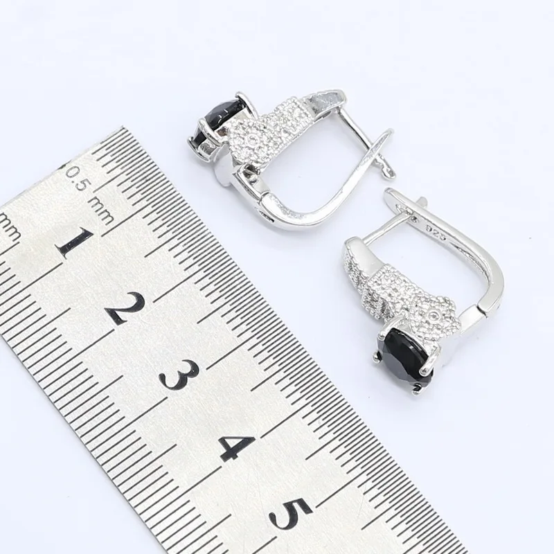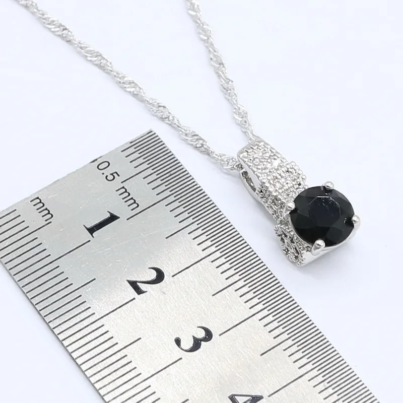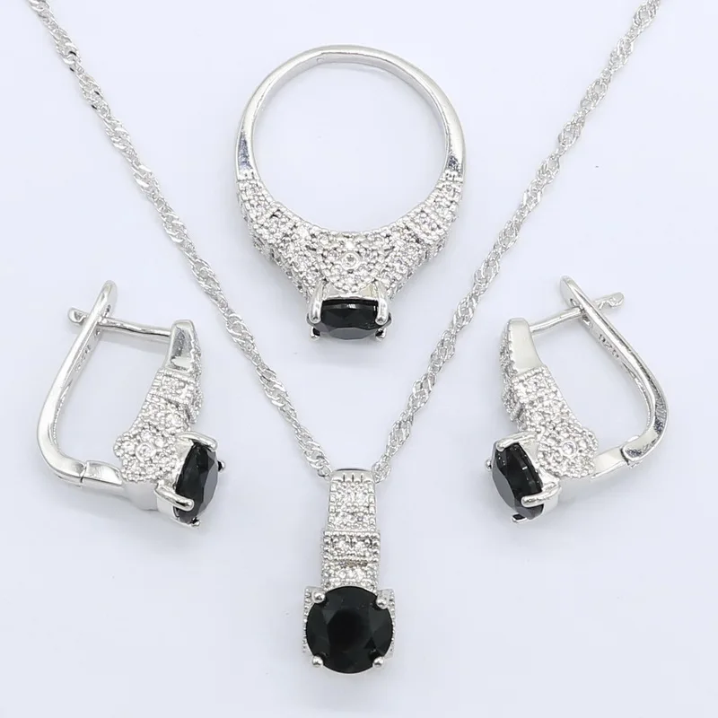 New 925 Silver Jewelry Sets For Women Geometric Black White Zircon Necklace Pendant Earrings Rings Gift