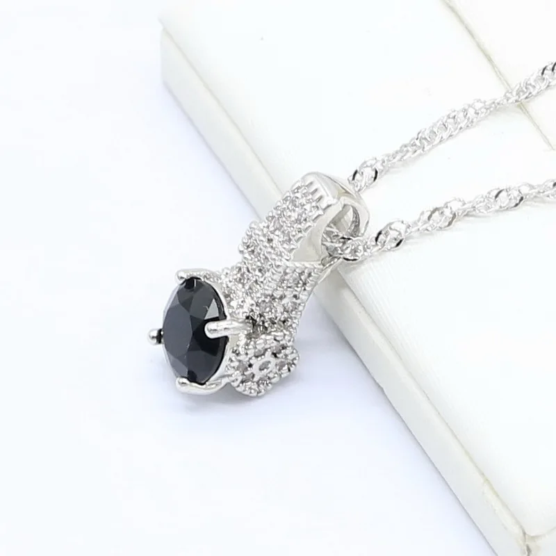 Promo 925 Silver Jewelry Sets For Women Geometric Black White Zircon Necklace Pendant Earrings Rings Gift