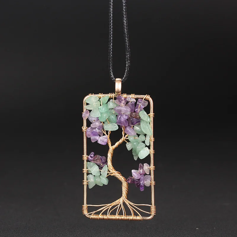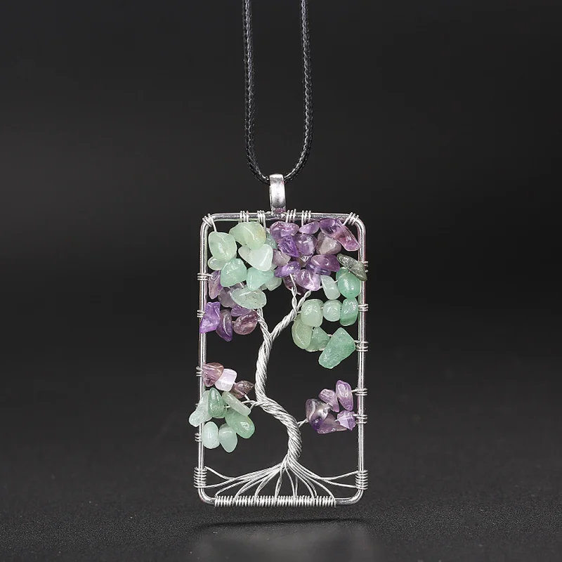 New Natural Quartz Stones Pendants Tree of Life Necklaces Women Men Crystal Choker Multicolor Wisdom Tr
